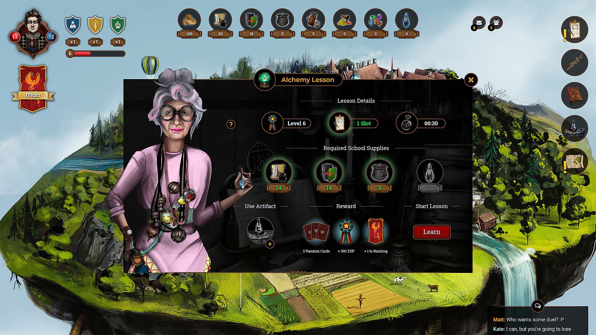 Create the character, equip it with essential utensils and attend lectures on different fields of magic. Within that, collect the experience points and collector’s cards representing all the witchcraft, equipment and creatures in the game.