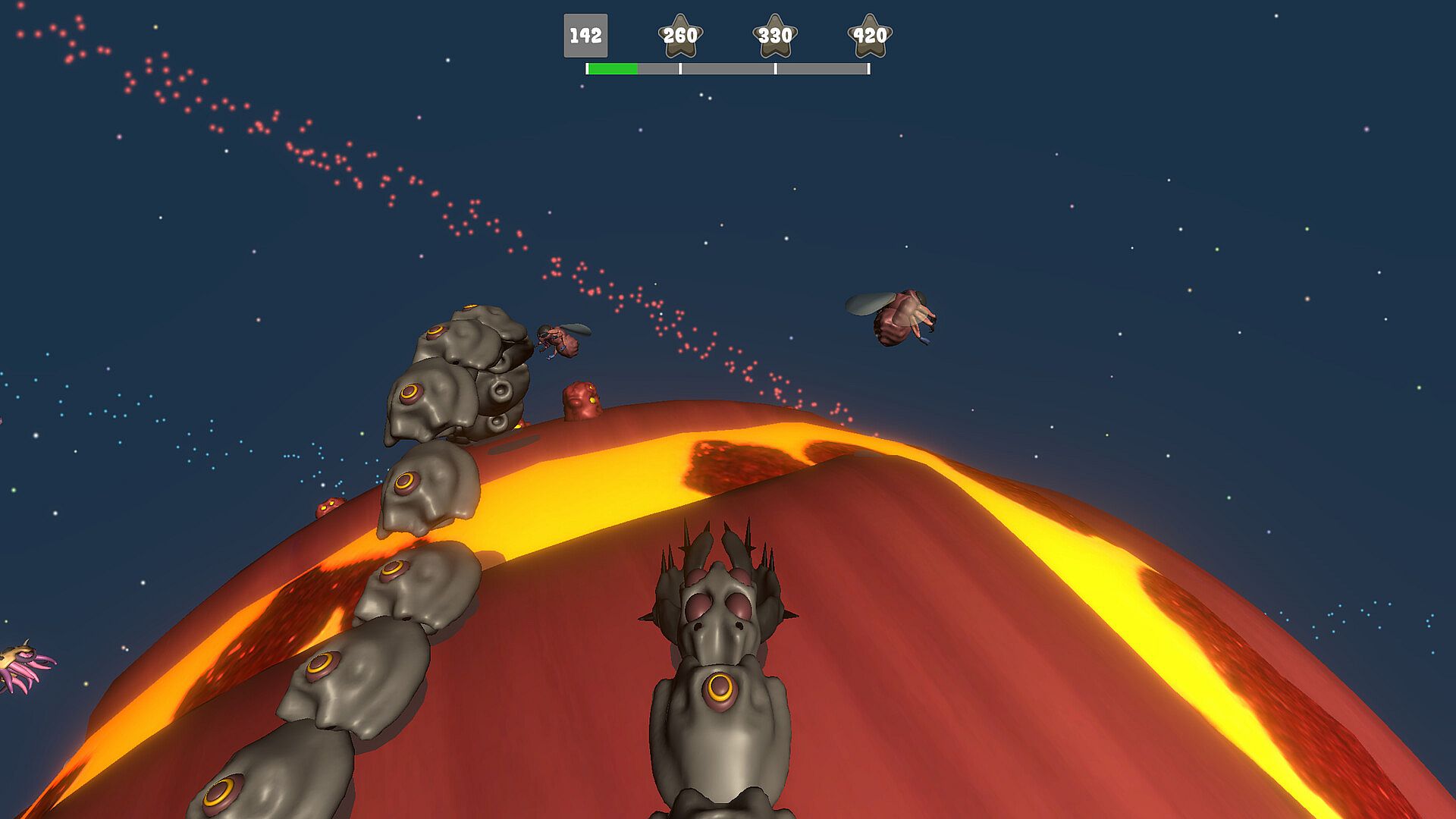 Control a massive snake monster that devours everything across planetary stages and cosmic structures. Grow longer with each bite until you span vast round surfaces and collide with your own tail. Excel to unlock new worlds, tackling varied gravity, bizarre physics, hostile monsters, and breakable objects. This indie action game on PC offers 32 unique levels with player model and color tweaks. Casual players enjoy the straightforward cycle of eating, expanding, and conquering stages. Devs craft distinct challenges per planet for repeat plays.