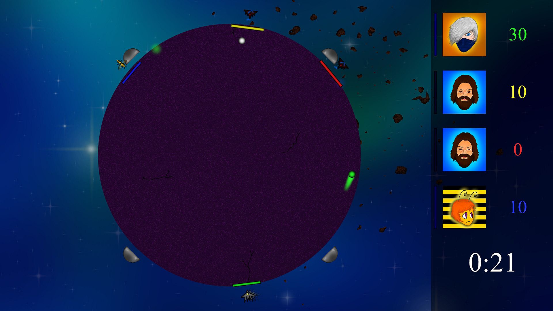 Compete with friends in outer space through intense survival matches in this free-to-play indie action game. Pick from seven playable characters and tackle randomized environments powered by smart AI. Jump into varied modes like Survival, Insane Survival, Scoring, Insane Scoring, 1 Ball, or XL Ball for fast-paced, competitive play on PC. The core loop pits players against each other in space-based showdowns, blending strategy and quick reflexes. Replayability comes from shifting maps and mode tweaks that ramp up the challenge. Action fans who crave multiplayer survival battles with friends will keep coming back for more.