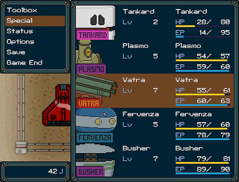 A retro styled 2D Sci-Fi RPG game including: