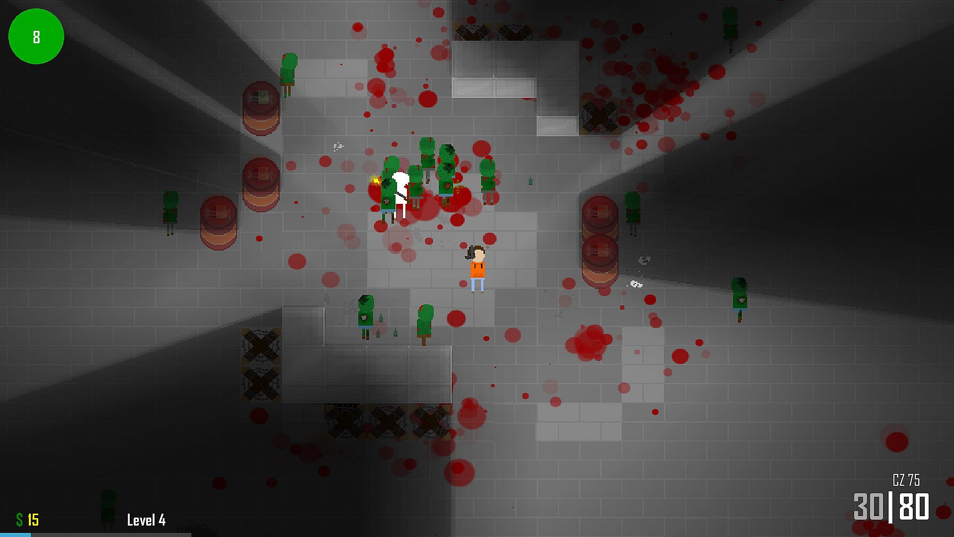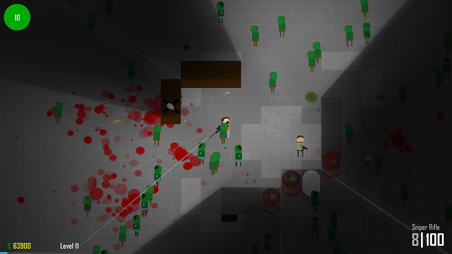 Each wave will be harder than the previous one, hosting more zombies. And while zombies don't give much money you'll need to balance between purchasing firepower and additional defences.