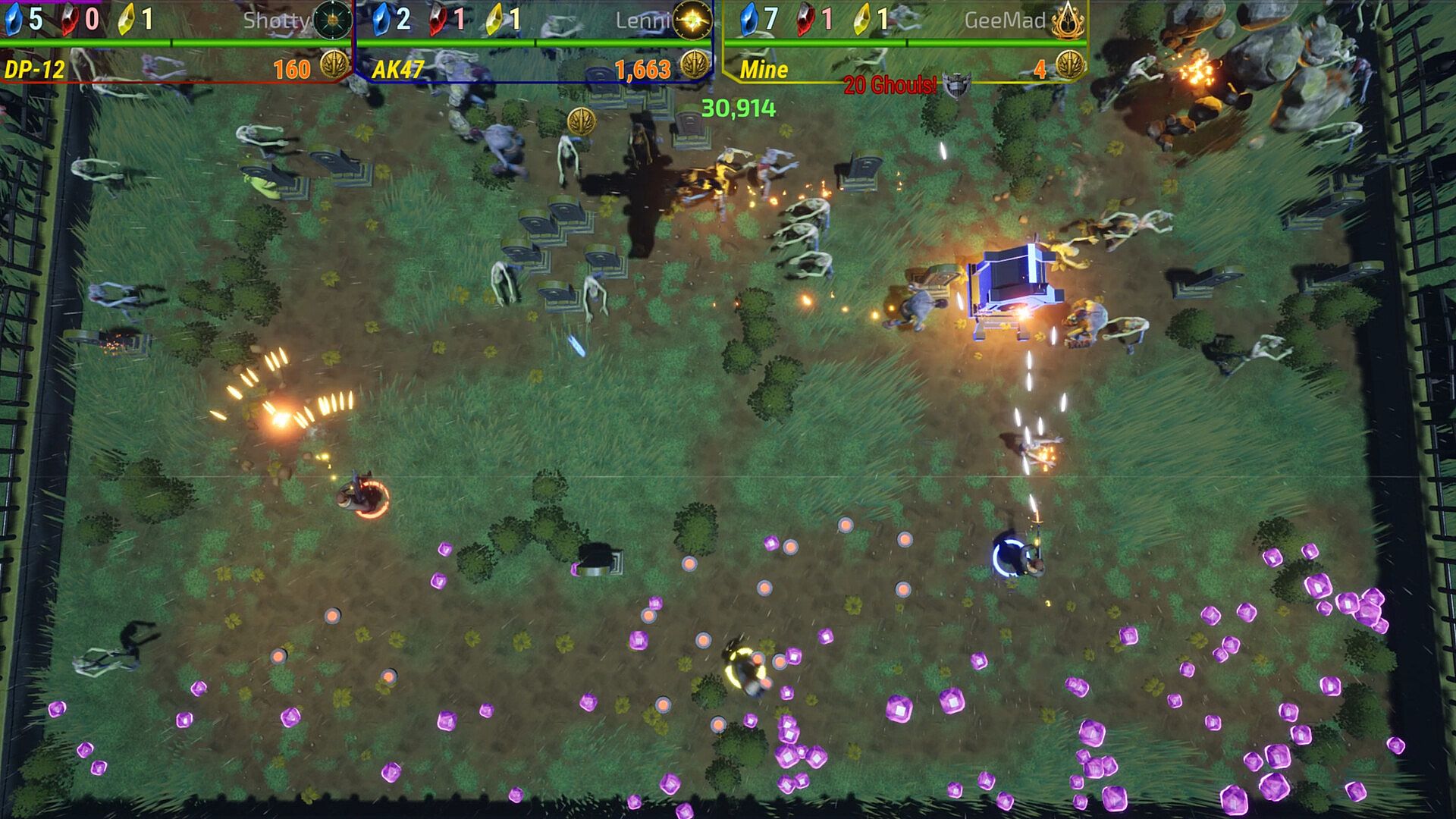 • We used a proven fun game mechanic of the classic atari game Centipede and changed the setting from centipede and mushrooms to zombies and graves.