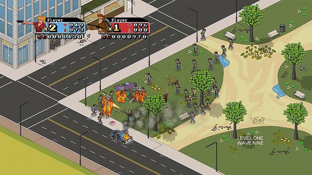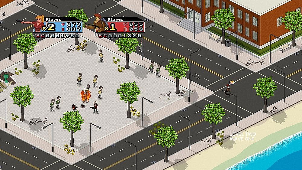 A zombie invasion grips the city, and the Zombusters step up to fight back. Tracy leads the charge as the all-around expert, joined by mad scientist Charles, explosives handler Ryan, and zombie-slaying Peter. Players tackle hordes in isometric 2D action, switching weapons, grabbing power-ups, and using varied movement to survive. This indie co-op game shines with 10 maps, 10 enemy types, and two playable characters plus two unlockables. Pixel art visuals and an original soundtrack keep the pace intense. Co-op fans grab a friend for the full rush on PC.